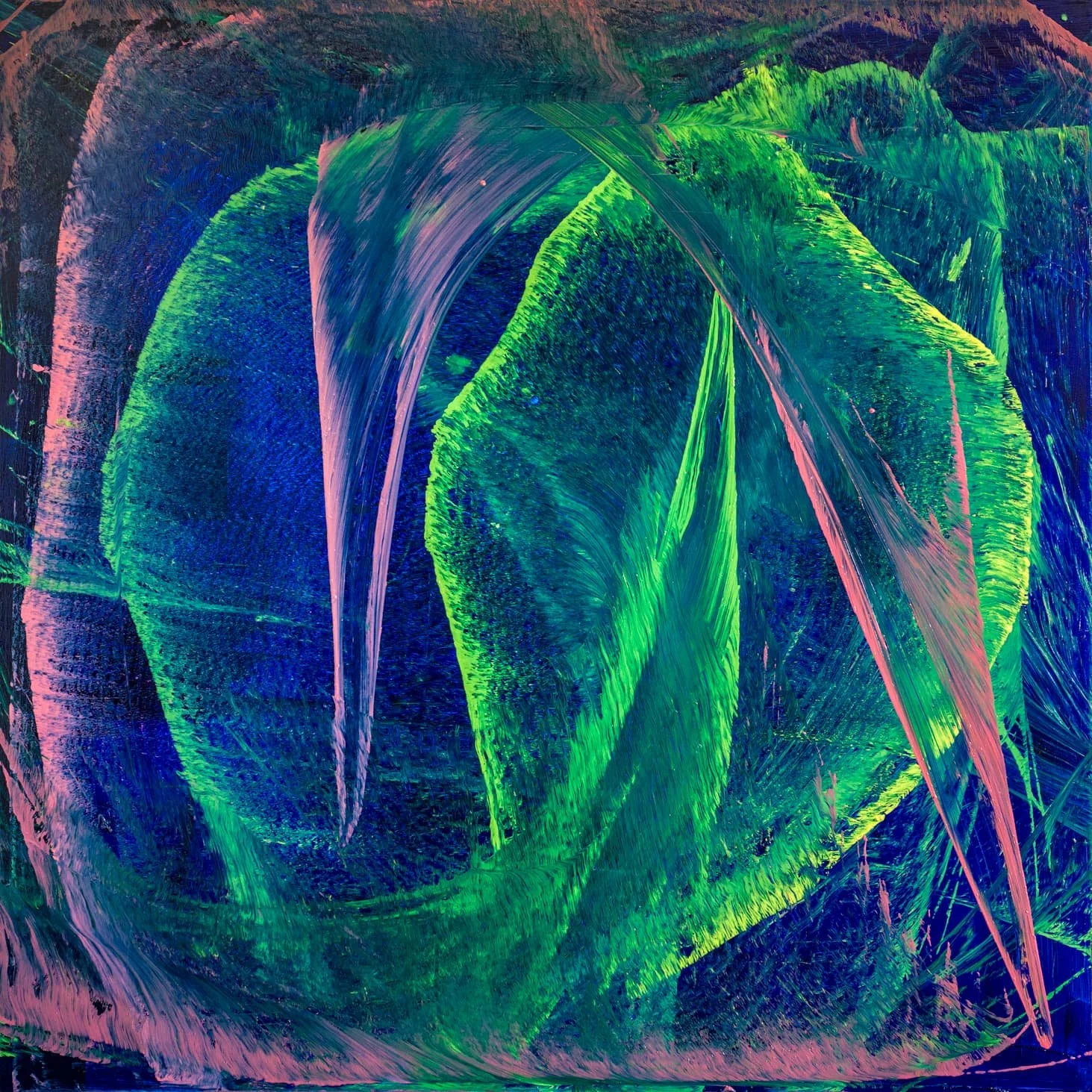 Organic Drift through Luminous Green Oil on Canvas 2025, 2ft x 2ft