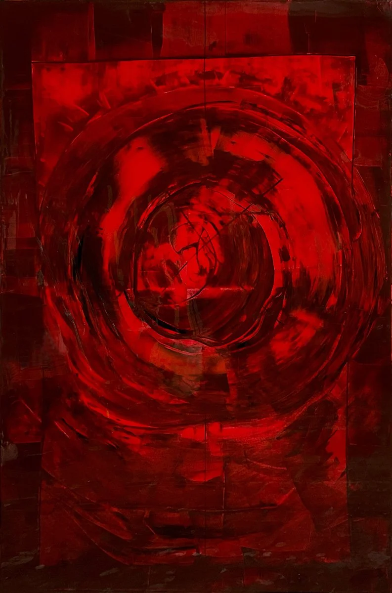 Painting didn’t replace technology—it reconnected me to something older, deeper. I began to explore emotion, memory, and time through line, pigment, and texture. What emerged was a practice grounded in contrast: systems and spontaneity, control and surrender.